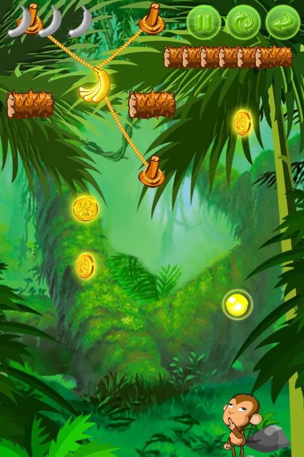 Aidez le singe à couper les bananes qui sont pendues sur les cordes.